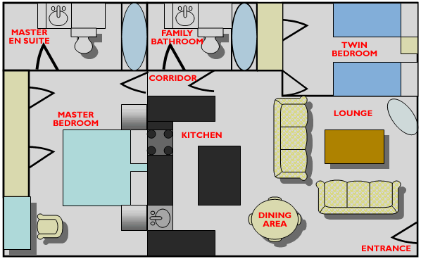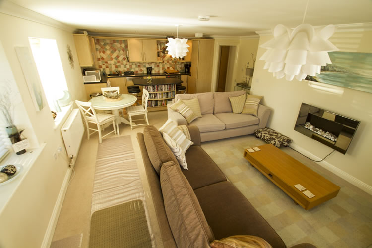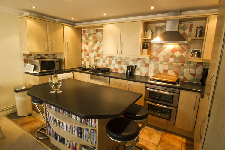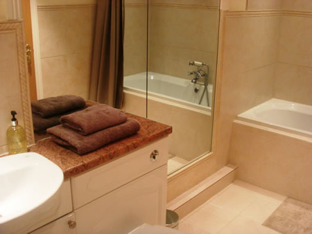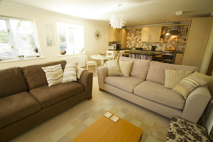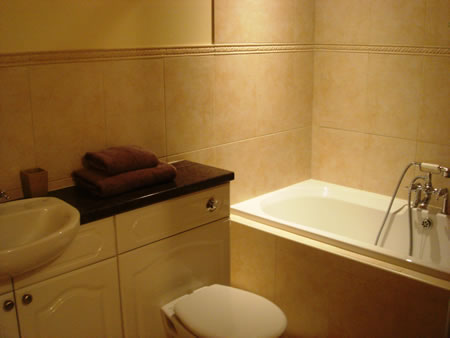 Boscombe Holiday ApartmentThis spacious ground floor apartment is accessed directly from the car park at the rear of Burlington Mansions apartments, formerly the Burlington Hotel, which opened in 1893 and was one of Bournemouth's foremost hotels in its heyday. This recently converted apartment is less than 500m from the newly renovated Boscombe Pier and promenade with its open air seafront cafes and restaurants, the artificial surf reef and seven miles of golden sandy beaches. Boscombe's local shops, restaurants and a variety of takeaways are also just a short stroll from the apartment. The self catering apartment, awarded four stars in 2010 by VisitBritain, has been fitted to a very high standard and consists of a large open plan lounge, kitchen and dining area, a large master bedroom with en suite bathroom, a twin bedroom and a further luxury family bathroom. The apartment provides sleeping accommodation in two bedrooms for four people, although additional comfortable folding beds can be provided for larger parties on request. A cot and high chair are also available. The kitchen is very well equipped with oven and hob, fridge, freezer, washer/dryer, dishwasher and microwave as well as the wide variety of cooking equipment you would expect to find in your own kitchen and enough crockery, cutlery and glasses for eight people. There is a small dining table which can seat up to six people and a breakfast bar with four bar stools, which makes cooking a much more sociable experience. The comfortable lounge area has a 32" LCD TV with Freeview, a DVD player and a Playstation 2 console. We also have an ever growing supply of DVDs to suit most ages and tastes as well as a selection of PS2 games. A wall mounted flame-effect electric fire provides an additional boost of heat on cooler evenings as well as providing a cosy focal point for the lounge area. There is also an ipod docking station and speakers. The master bedroom has a very large super king size bed (6' wide) and there are two full size single beds in the twin bedroom. There is ample clothes storage in both bedrooms and a desk in the master bedroom provides a bright quiet space for anyone who needs a place to work. There are TVs and DVD players in both bedrooms and a toy box in the twin bedroom holds a range of games for both children and adults. Both luxury bathrooms have showers over double ended baths and endless supplies of hot water for rinsing the remains of the beach off you at the end of a hard day's surfing or sand castle building. There is also a variety of beach toys and body boards, folding deck chairs, a beach umbrella and cool bag with cool blocks in the freezer for the use of guests as well as a growing library of books. Duvets, bed linen, towels and tea towels are provided and central heating and power is included. Beach towels can also be provided upon request. Summary of accommodation: